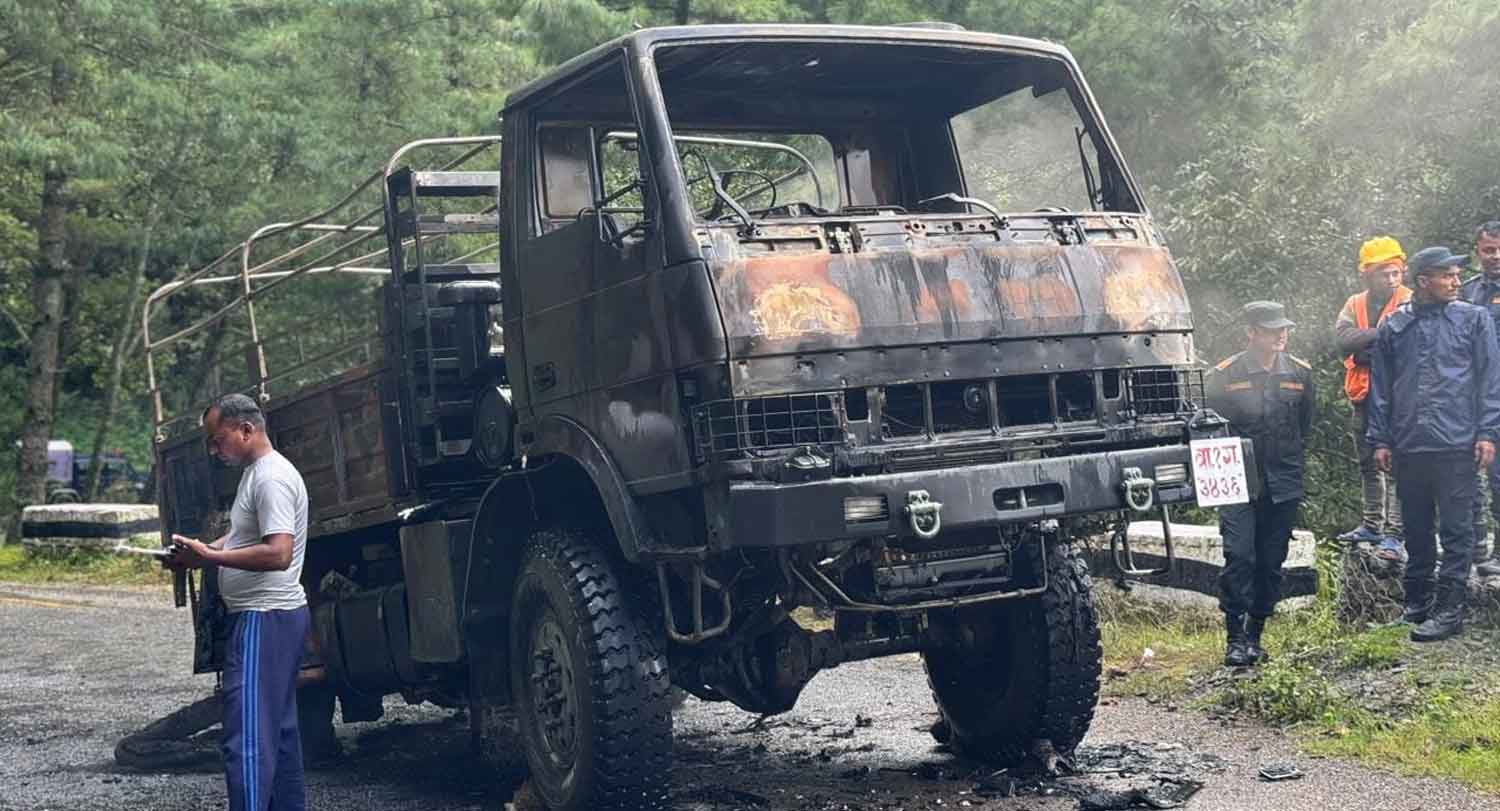 गुडिरहेको सेनाको ट्रकमा आगलागी