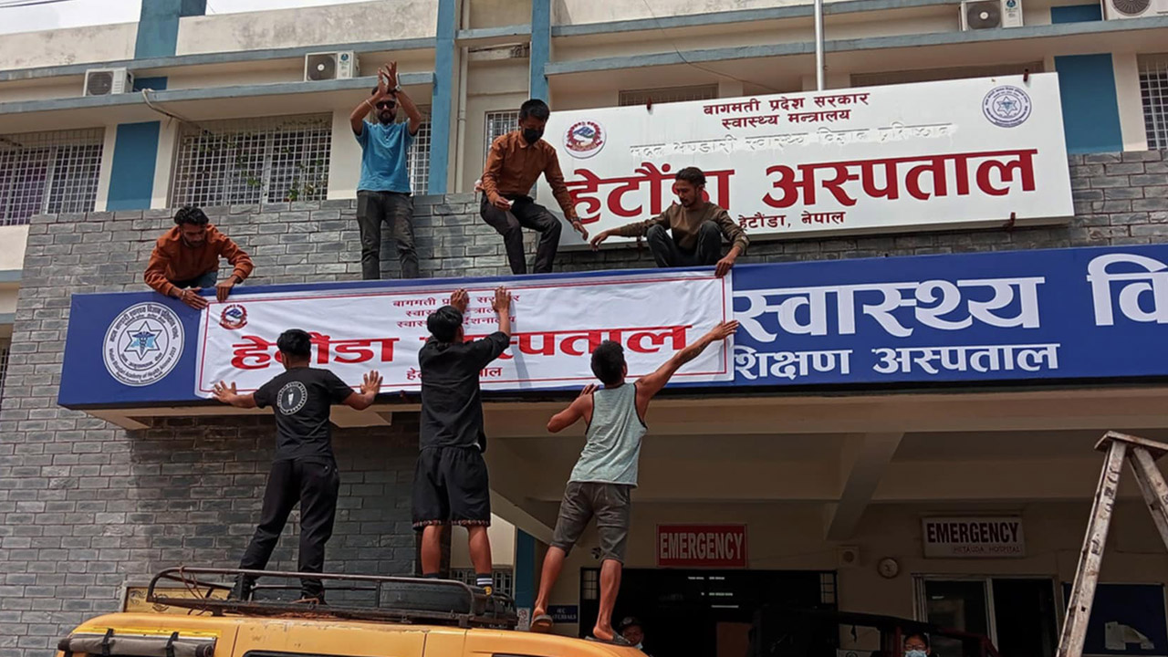 हेटौँडा अस्पतालको बोर्डबाट प्रतिष्ठानको नाम युवाहरूले मेटाए प्रतिष्ठानद्वारा कारबाहीको माग
