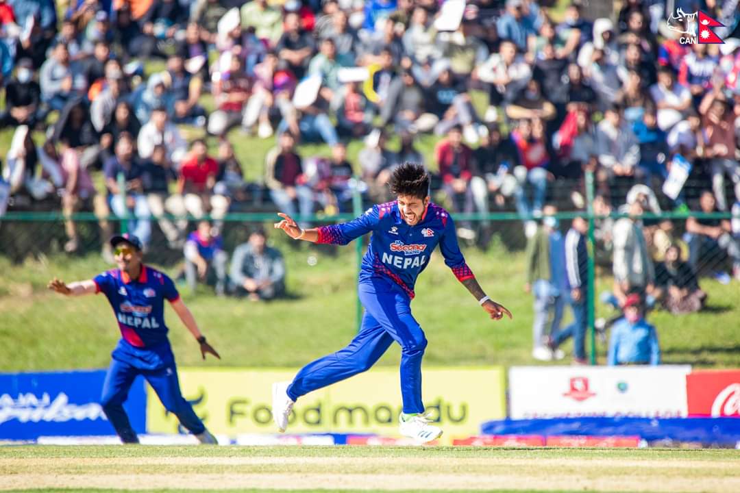 नेपालका करण केसीले ३ विकेट लिए भने सोमपाल कामी र सन्दीप लामिछानेले २/२ विकेट हात पारे । गुल्सन झा र अविनाश बोहोराको नाममा एक/एक विकेट रह्यो ।